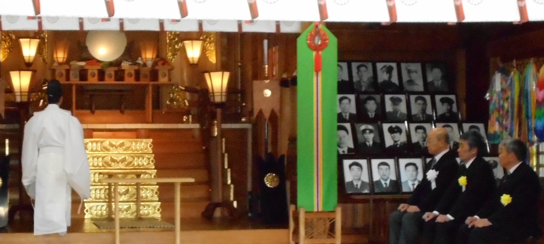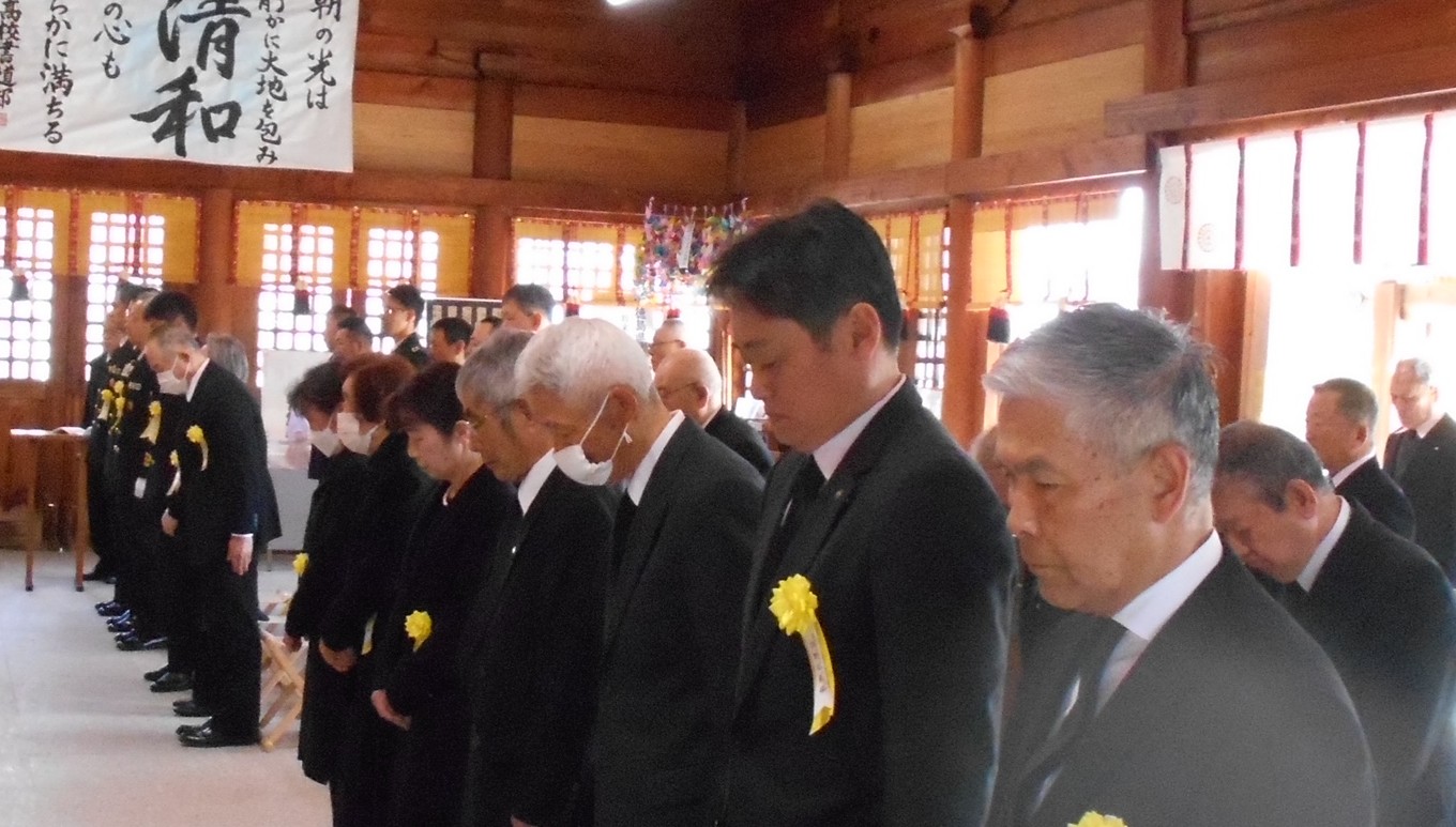 護國神社には殉職自衛隊員24柱が合祀されており、県内外の14ご遺族から4家族5名のほか、徳島県を警備隊区とする第15即応機動連隊長はじめ県内各部隊指揮官等、防衛協力諸団体の代表、隊友会役員・会員など総勢約50名が参列した。本殿において、祭主である髙木会長の祭文奏上、参列者の玉串奉奠により、厳かに慰霊の式典が齊行された。その後、故人を偲びつつ、会食・懇談が行われ、来賓の各部隊長、協力団体会長から部隊の状況やご遺族への励ましのお言葉などを頂くとともに、ご遺族から近況やご遺族との思い出などをお話し頂いた。次回の再来を期して、無事に慰霊祭を終えることができた。(事務局長・近藤嘉宏)
